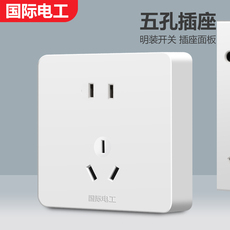 国际电工明装面板家装用开关插座二孔四孔2孔4孔明线盒电源插座