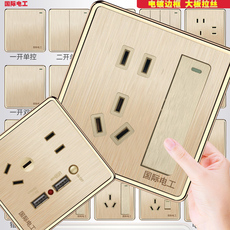 国际电工开关插座香槟金纯平大板三开双控开关86型家用电源墙壁面
