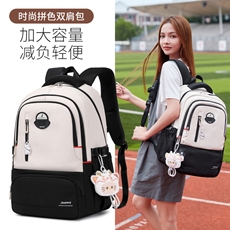 减负书包初中生女生大容量结实耐用拼色双肩包高中小学生旅行背包