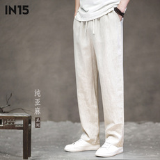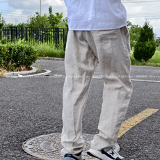 100%纯亚麻夏季男士休闲裤凉爽透气薄款百搭男裤垂感宽松直筒长裤