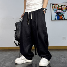 亚麻裤子男士潮流春夏宽松垂感阔腿灯笼裤新中式男装棉麻料休闲裤