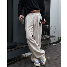 日系复古设计感褶皱休闲裤裤男款2025夏季新款宽松亚麻休闲直筒裤