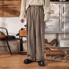 MANCHER 四季可穿 收褶A字版型宽松亚麻裤男女老钱风通勤休闲西裤