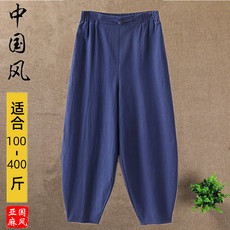 夏亚麻加肥加大男宽松哈伦阔腿灯笼长裤棉麻休闲复古风禅服太极裤