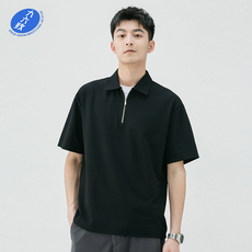 九六致原创夏日纯色宽松拉链短袖高级感polo衫男式翻领T恤轻熟风