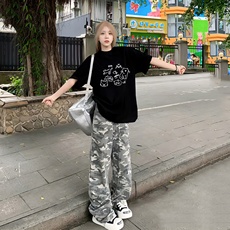 冷大娘 男女中大童夏季纯棉欧美短袖T恤小个子印花休闲宽松上衣