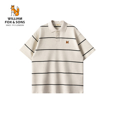 威廉福克斯夏季透气短袖POLO衫男宽松复古学院风刺绣翻领条纹T恤