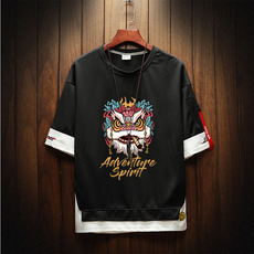 夏季短袖t恤男士韩版潮流半袖国潮宽松港风体恤五分袖假两件上衣