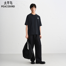 太平鸟男装夏季重磅纯色短袖T恤宽松阔版休闲质感胸口刺绣男士
