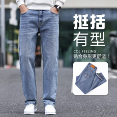 罗蒙耐磨男士牛仔裤2025秋冬商务休闲宽松高腰直筒男裤弹力长裤子