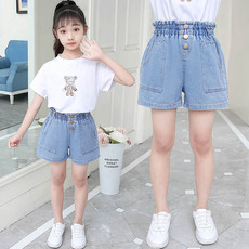 外贸原单微瑕女男童牛仔长裤春秋气球裤棉中大童宽松休闲松紧高腰