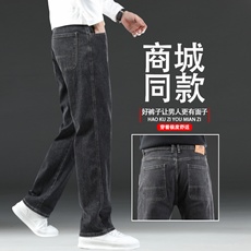 秋冬弹力牛仔裤男士羊绒蚕丝棉直筒宽松中年爸爸高腰加绒加厚长裤