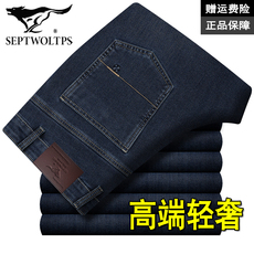七匹狼秋冬厚款弹力男士牛仔裤高腰宽松直筒裤中年商务休闲裤子男