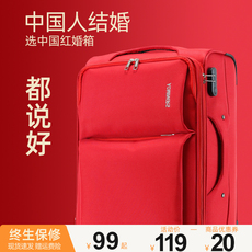 结婚红色箱子行李箱陪嫁箱牛津布拉杆箱女皮箱新娘嫁妆密码箱24寸