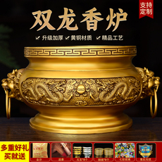 铜香炉黄铜家用龙戏珠祠堂特大号寺院供奉双龙鼎寺庙香炉佛具复古