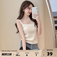 【到手79元】带胸垫复古方领小背心吊带内搭无袖针织打底衫上衣女