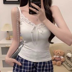 蕾丝吊带上衣螺纹棉甜美款修身女士纯棉内搭小背心打底衫女春夏