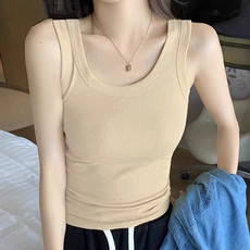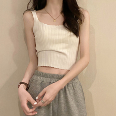 多巴胺U领遮副乳小吊带背心女夏坑条针织内外穿百搭美背打底上衣