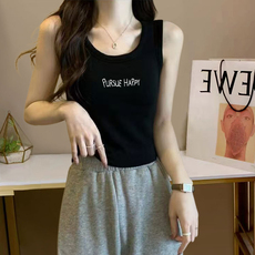 夏季新款修身显瘦美式复古辣妹小吊带背心女纯棉正肩无袖打底上衣