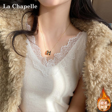 拉夏贝尔白色蕾丝吊带小背心女秋冬新款内搭设计感打底衫针织上衣