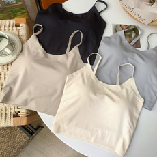 夏季小吊带背心式女内搭打底外穿美背文胸一体带胸垫抹胸上衣白色
