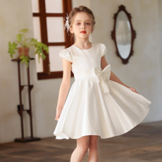 女童白色蛋糕裙连衣裙2025秋冬女孩加绒花童公主裙生日礼服连衣裙