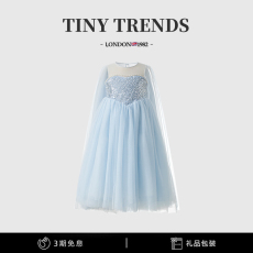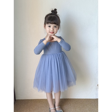 女童蓝色长袖纱裙连衣裙2025春季新款女孩芭蕾舞裙子公主裙生日裙