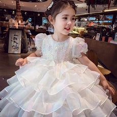 女童连衣裙2025新款夏季韩版小女孩时尚超好看亮片生日礼服公主裙