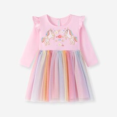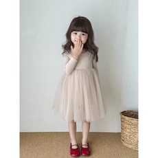 女童秋冬款网纱连衣裙儿童洋气公主裙小女孩纯色气质德绒拼接长裙