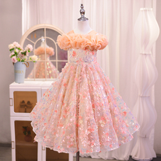 OPCP儿童连衣裙2025春夏新款女童高端礼服蓬蓬裙小女孩大摆公主裙
