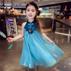 女童夏季连衣裙2025新款儿童气质挂脖无袖公主裙女孩夏装吊带裙子