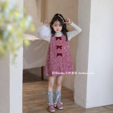 女童亮片蝴蝶结背心裙2025秋季新款小女孩公主裙生日礼服连衣裙子