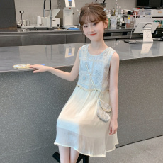 女童连衣裙夏装2025新款儿童度假风背心裙子小女孩蕾丝网纱公主裙