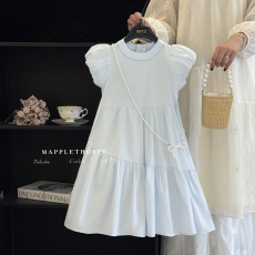 女童连衣裙夏季2025新款儿童简约公主裙小女孩法式泡泡袖棉布裙子