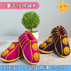 儿童棉鞋冬男女毛线编织鞋成品小孩手工鞋居家地板防滑加绒保暖鞋