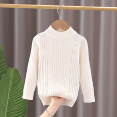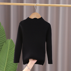 男童新款女童秋冬款加绒加厚白色黑色打底毛线衫套头高领小孩毛衣