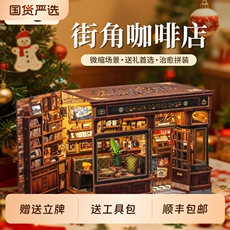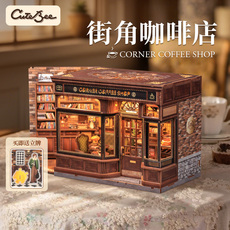 CuteBee街角咖啡店新年礼物手工diy小屋房子微缩场景模型城市漫步