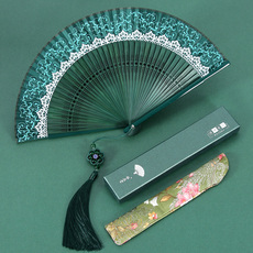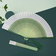 扇子夏天便携古风绿色折扇女式随身古典中国风汉服旗袍折叠小扇子