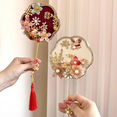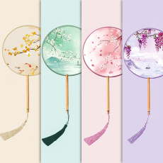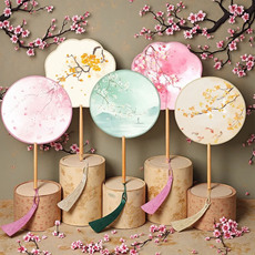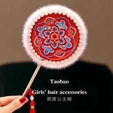 刺绣团扇子汉服迷你古风原创高端圆形宝宝舞蹈旗袍儿童小号夏季女