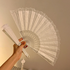 法式古风蕾丝流苏折叠小扇子夏季随身便携舞蹈汉服女生中国风折扇
