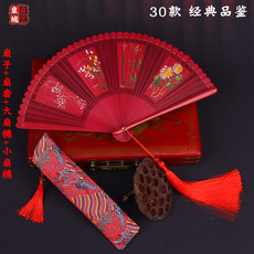 虞书欣丁禹兮跳寄明月全竹扇子雕刻古风女士折扇红黑色小巧舞蹈扇