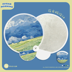 卡通反光板折叠小扇子团扇女夏天可爱便携迷你学生儿童折扇收纳袋