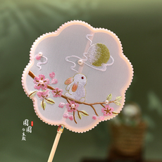新中式国风扇子儿童刺绣玉兔古风团扇汉服小女孩拍照马面裙走秀扇