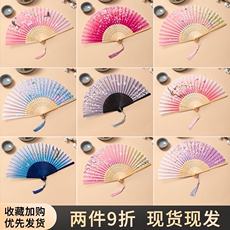 中国风夏日随身流苏扇子折扇古风古代旗袍女式汉服儿童舞蹈小竹扇