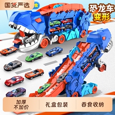 儿童霸王龙恐龙变形轨道玩具车3吞食滑行弹射合金收纳小汽车男孩6