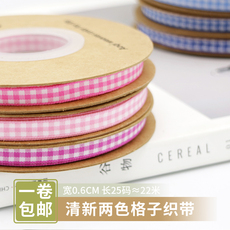 0.6cm格子织带娃衣辅料清新格纹包装小熊装饰蝴蝶结diy编发丝带
