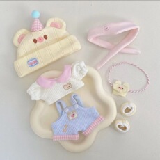 10cm新品娃衣奶呼呼系列“奶油小熊”棉花娃娃玩偶换装背带裤套装