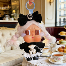 韩版15cm潮玩哭娃娃衣黑色小熊毛绒套装蝴蝶结手工娃娃衣服