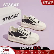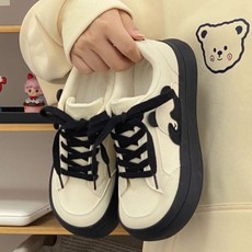 卓诗尼新款女单鞋圆头厚底系带运动休闲小白鞋板鞋日常百搭通勤