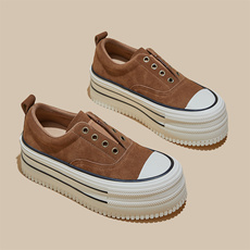 厚底松糕鞋帆布鞋子2025新款百搭休闲板鞋内增高6CM小白鞋女单鞋